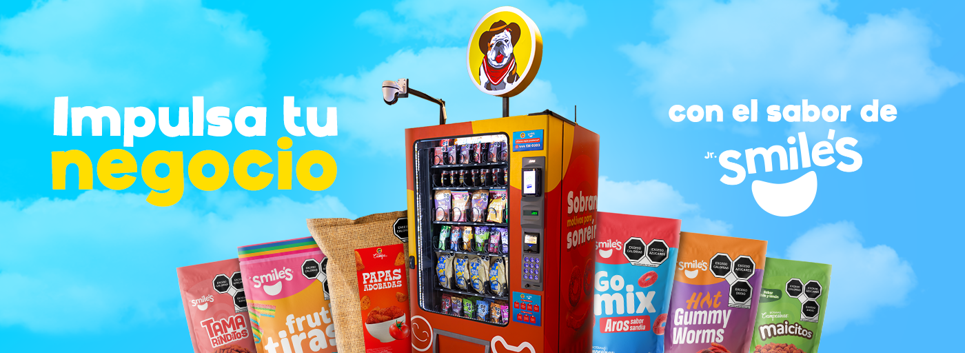 En Botanas Campesinas, sabemos que la calidad es la clave del éxito. Por eso creamos Smiles: una línea premium de gomitas dulces, enchiladas y preparadas que ya ha conquistado puntos estratégicos como Plaza The Park en SLP. Ahora, ponemos nuestra infraestructura y marca a tu disposición para que potencies tu negocio o inicies tu propio camino en el sector de las máquinas expendedoras